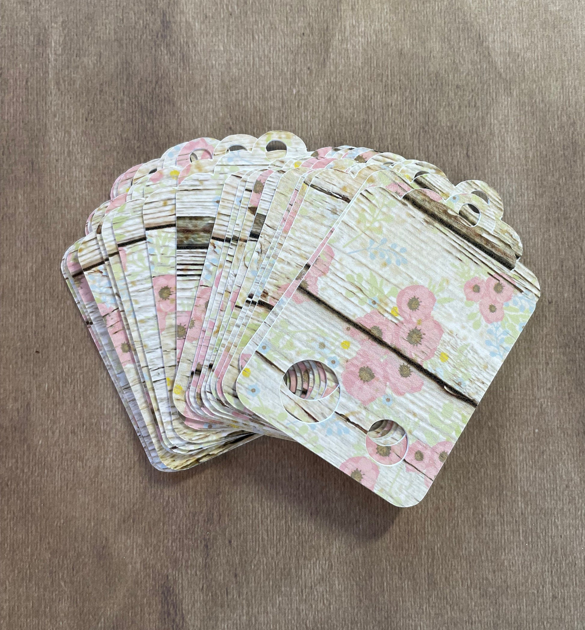 Floss Keepers/Tags - Vintage Wood with Pink Flowers