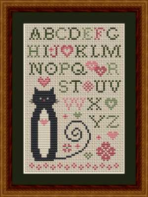Heart Alphabet Cat - Happiness is HeartMade - Cross Stitch Pattern