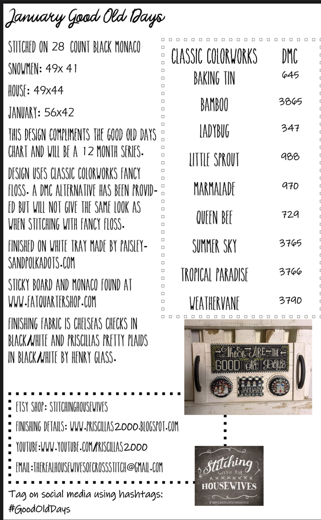 January, Good Old Days - Stitching with the Housewives - Cross Stitch Pattern
