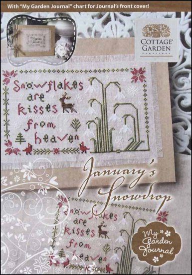 Part 1 of 12 in the My Garden Journal series by Cottage Garden Samplings. Verse reads; "Snowflakes are kisses from Heaven". The My Garden Journal series can be stitched alone, stitched together or combine them to create a scrapbook journal.