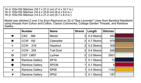 Model was stitched on 32ct Sea Lavender linen from Barefoot Needle Art