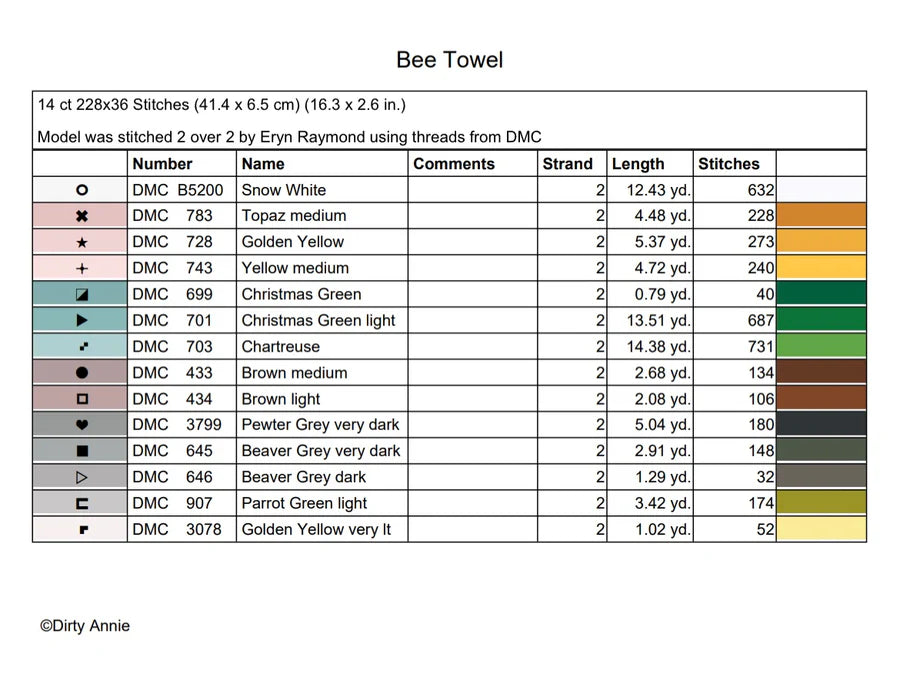 PREORDER Honey Bee Towel - Dirty Annie's - Cross Stitch Pattern