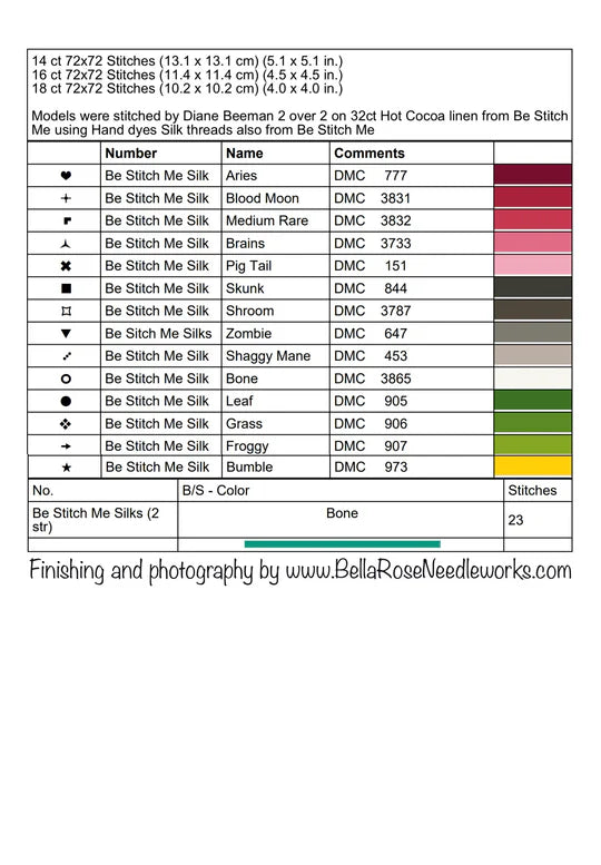 Models were stitched 2 over 2 on 32ct Hot Cocoa linen from Be Stitch me using hand dyed silk threads also from Be Stitch me.