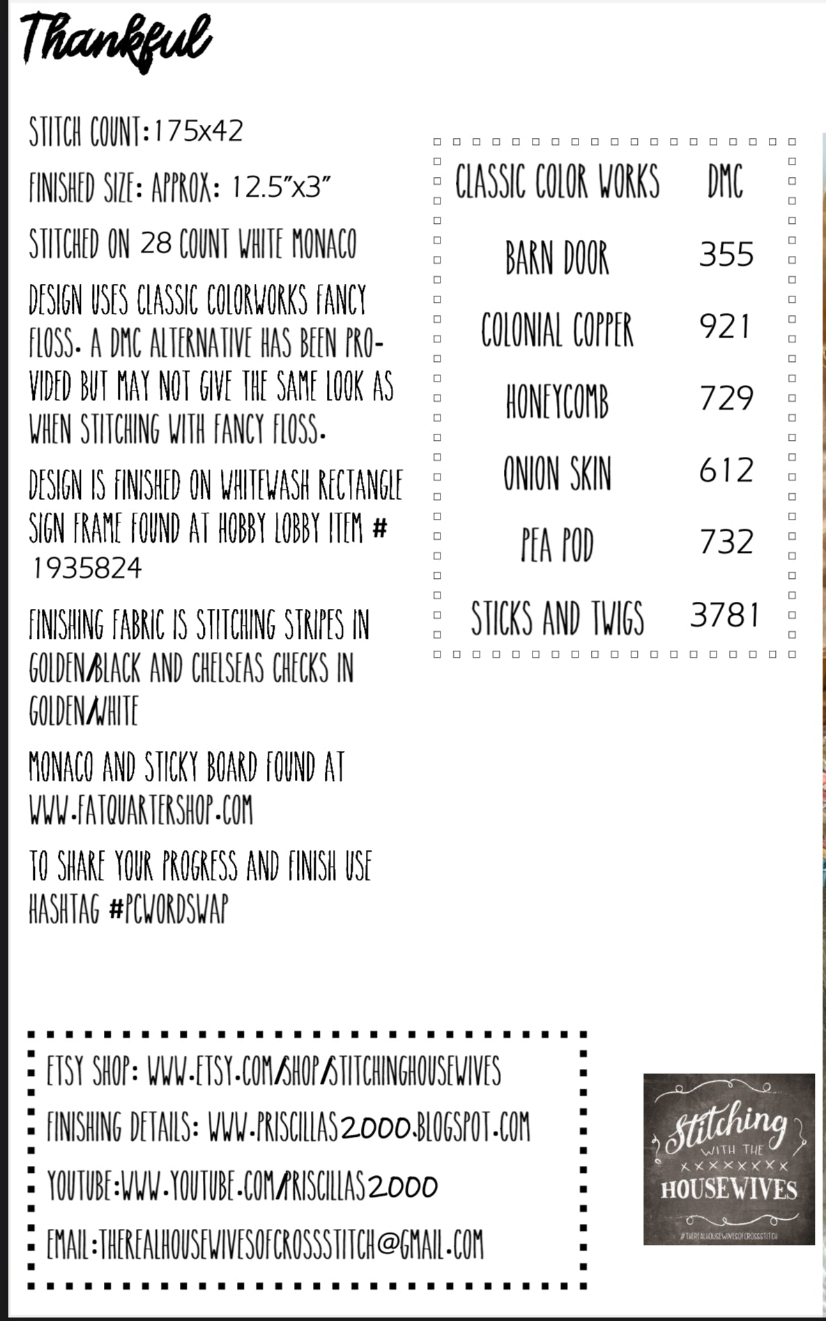 Thankful - Word Swap Series - Stitching with the Housewives - Cross Stitch Pattern