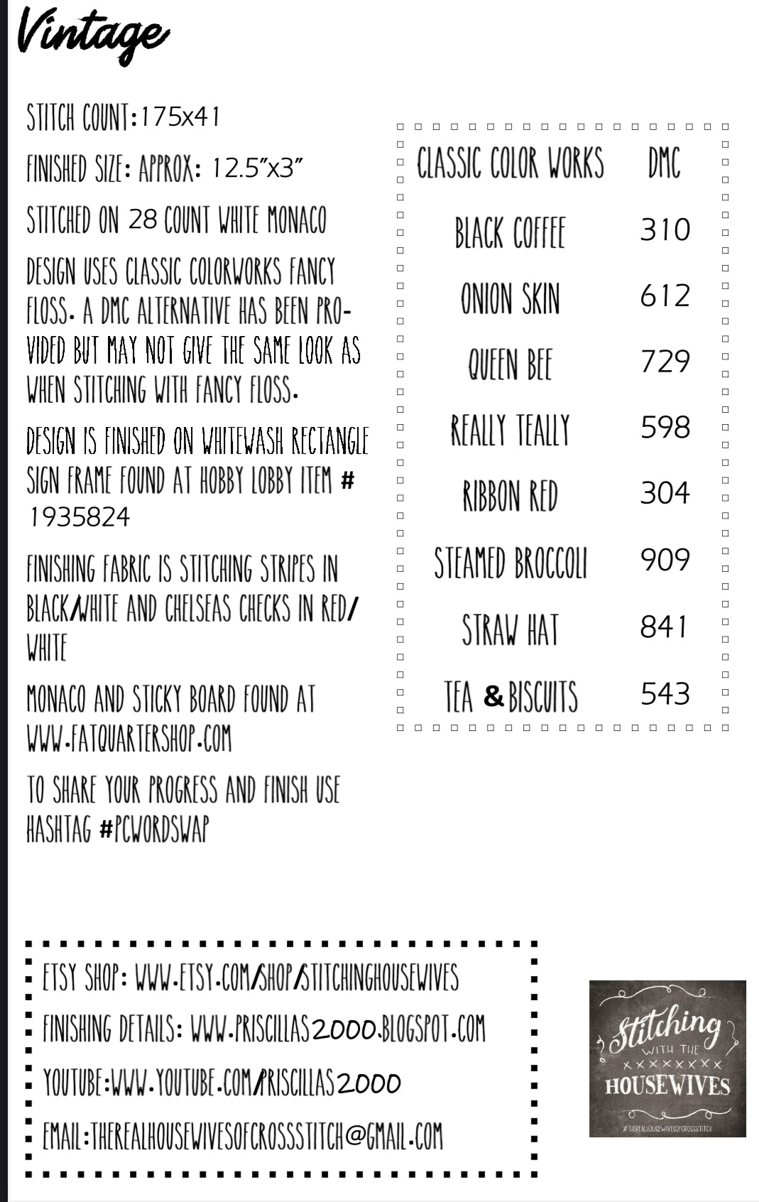 Vintage - Word Swap Series - Stitching with the Housewives - Cross Stitch Pattern