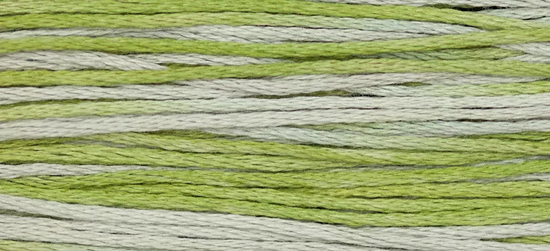 Hand Over-Dyed Floss, Sold in 5 yard Skeins. The colors are variegated enough to be noticeable, yet subtle enough to blend naturally. Because it is pliable, this fiber is perfect for cross stitch and needlepoint on many different counts of fabric and canvas. It also works great for punch needle (1, 3 and 6 strand) and stitching on wool applique and penny rugs. It gives a more subtle appearance to the fine stitching on applique than some of the heavier fibers like pearl cotton.